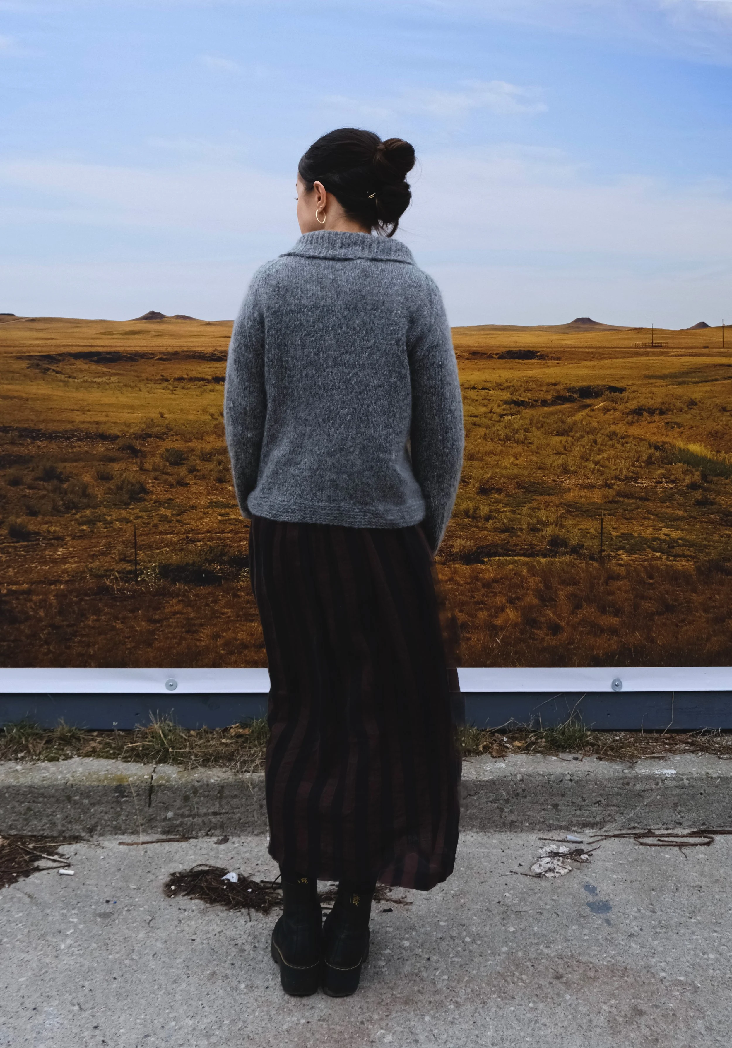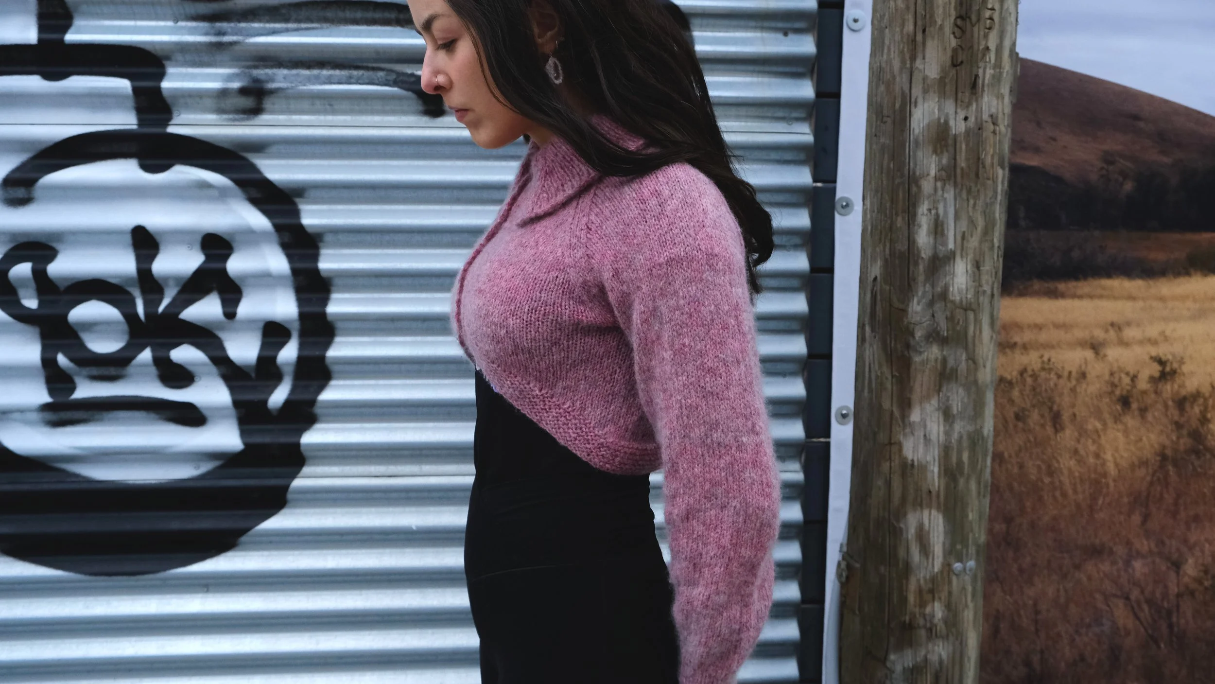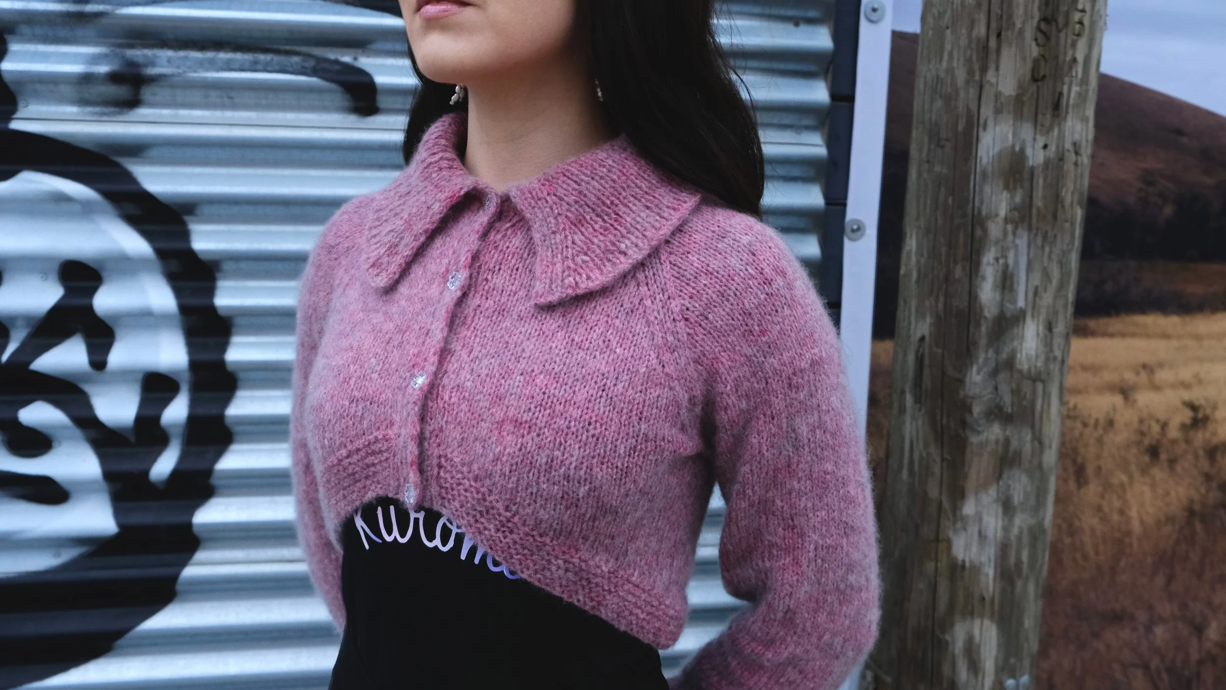 A cardigan featuring sloped fronts and an ample collar. Knit from the bottom up in a cropped length or in a longer length of your choosing!