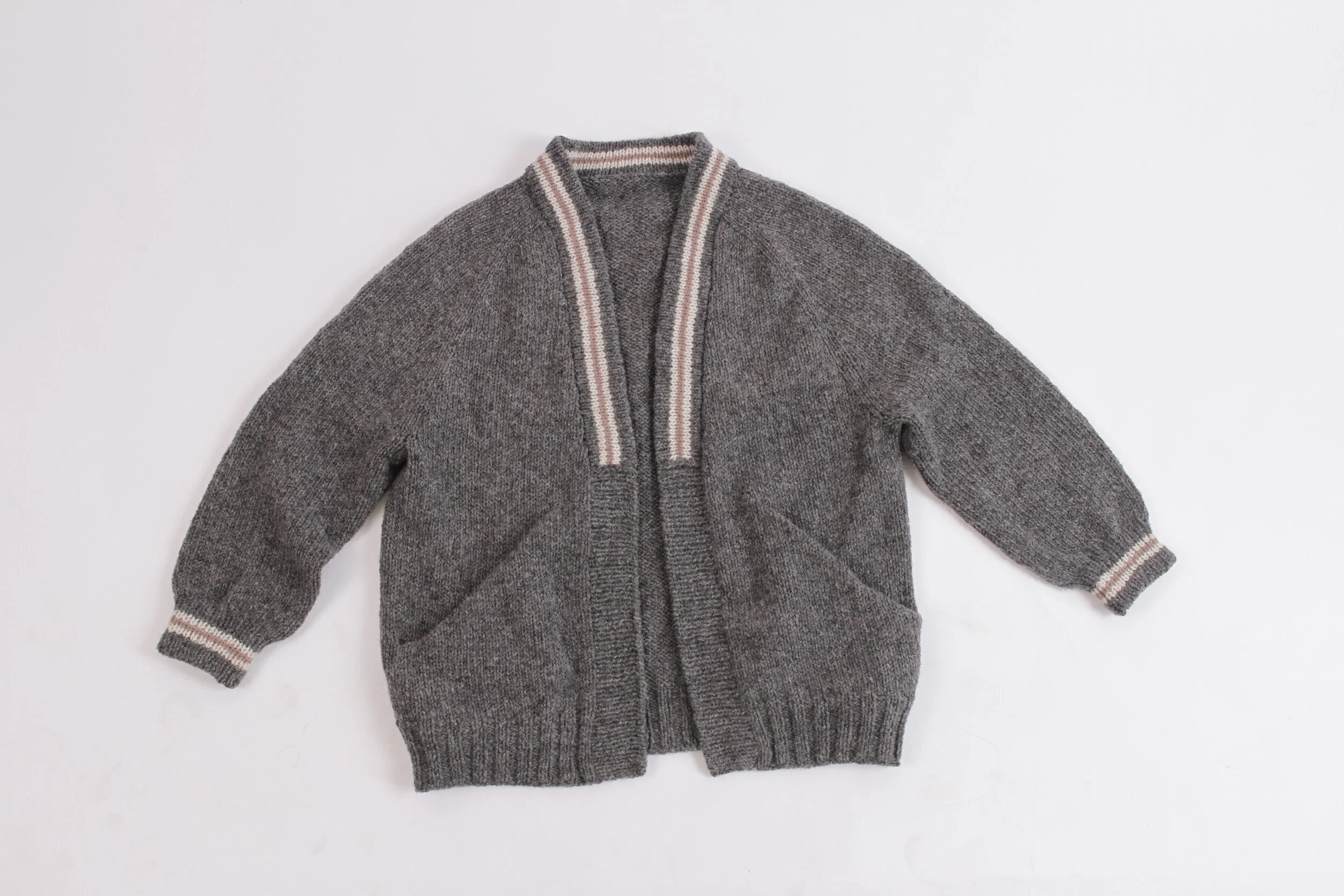 a Ginsan cardigan, completed up until the point just before the pattern section ‘Left Pocket Flap’
