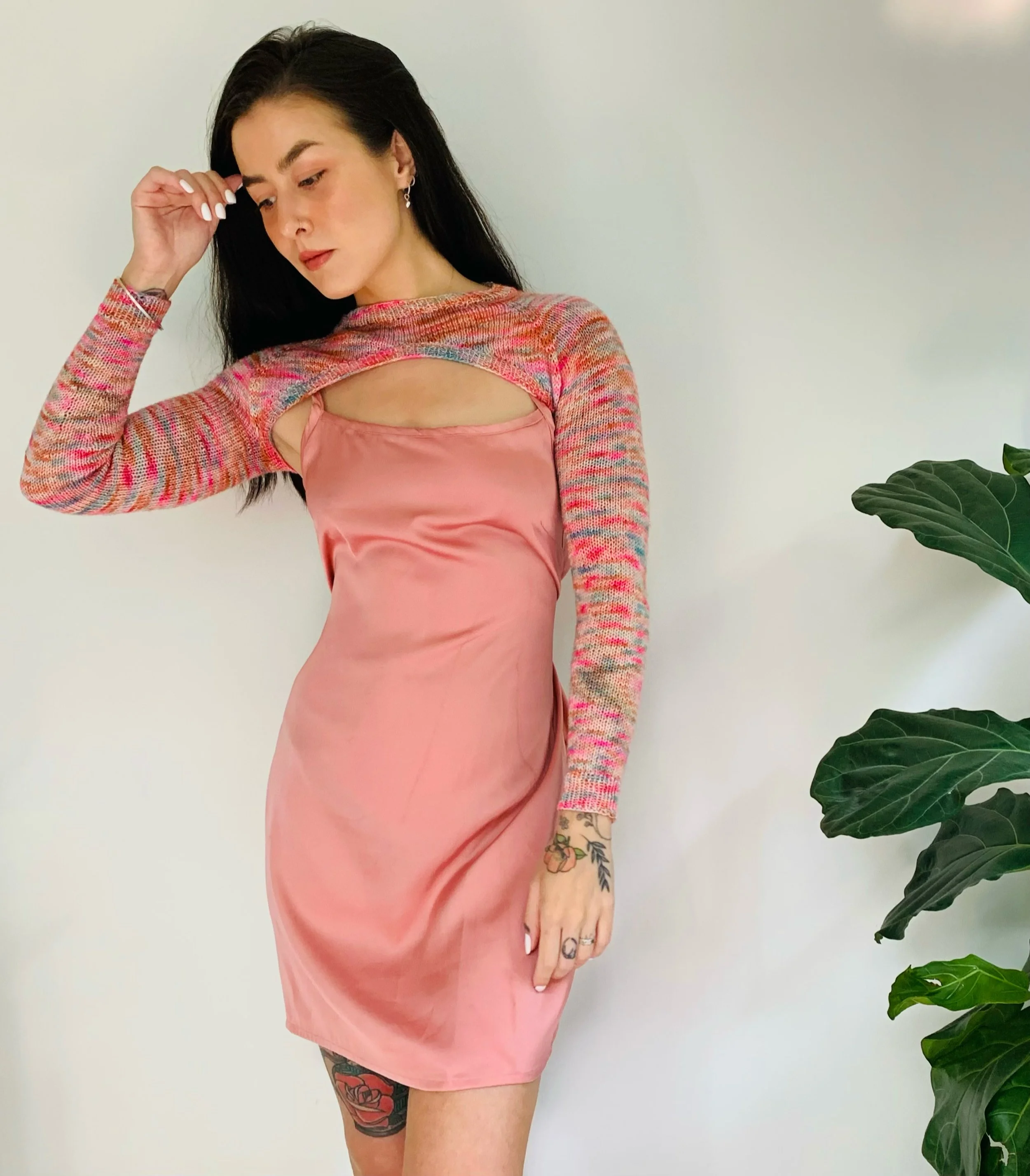 Basically, just a pair of sleeves with a teeny bit of raglan, shaped using wrap and turn short rows :)