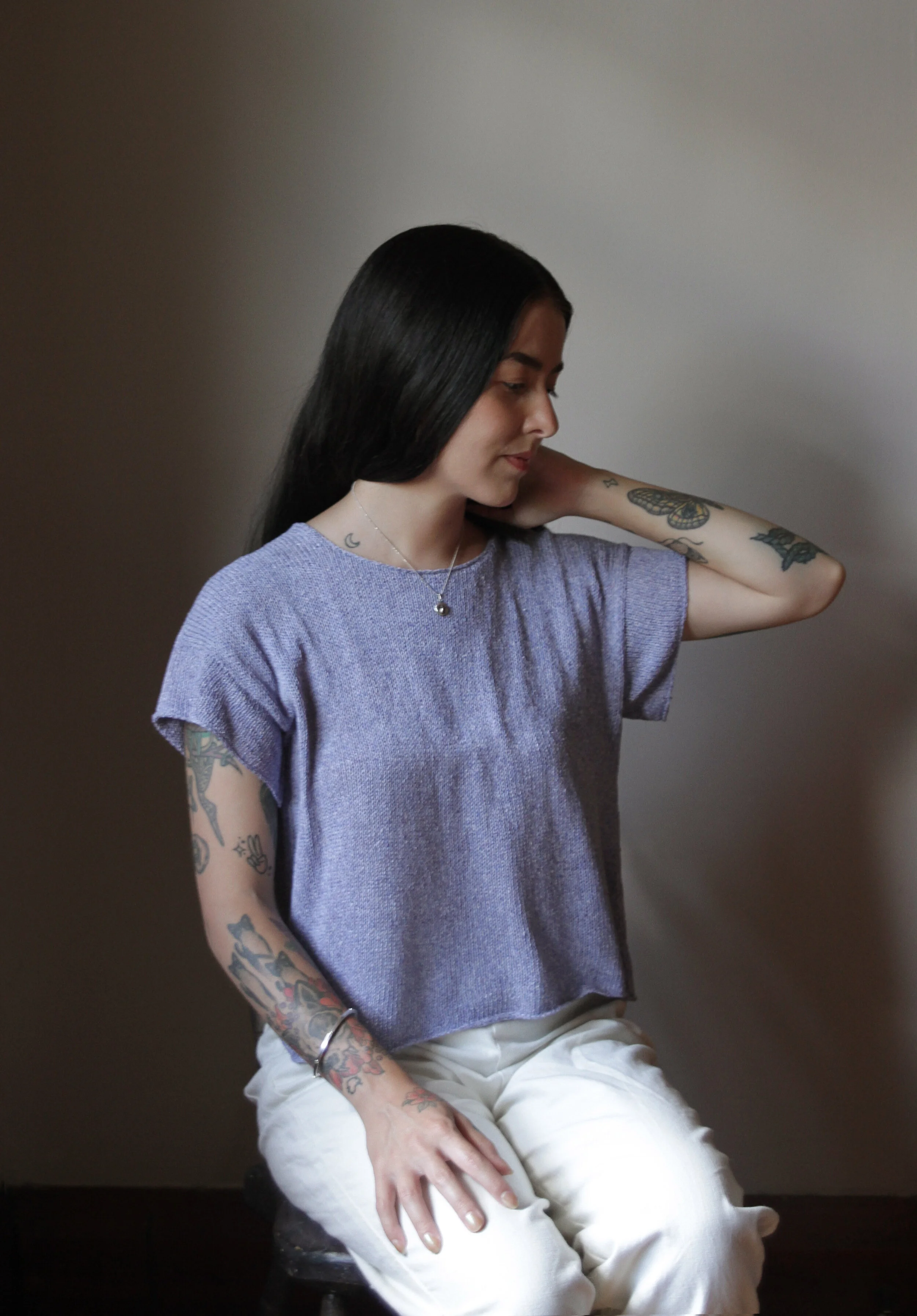 The Taro Tee is a really simple and basic t-shirt style top, with no major design features. It's what I would call a "blank slate" sort of design that you can modify to your liking, if desired. You could knit it longer for a less cropped look, add an edging (see notes!) to the hem, sleeves, and neck, make the sleeves longer, or just knit the pattern as is! It's up to you. I find that simple and plain garments are the ones that get the most wear in my wardrobe.